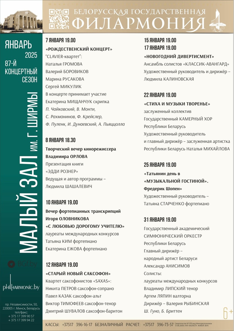 Білетная каса: +375 17 396-16-17