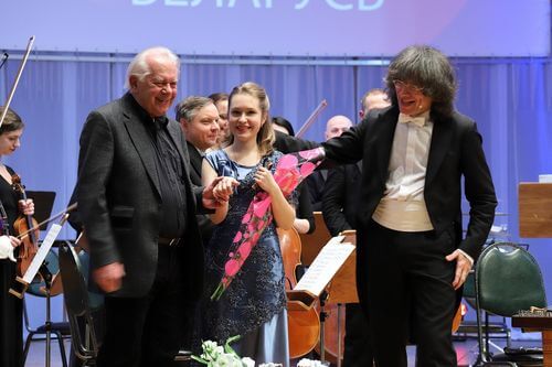 Але ж вяртанне ў дзяцінства стала далёка не адной разыначкай юбілейных ушанаванняў. Было яшчэ вяртанне ў мінулае: не толькі фота на экране і згадванне адметных падзей, але і штосьці накшталт “аркестравай зборнай”, калі некаторыя творы выконваліся цяперашнімі і ранейшымі музыкантамі разам. Была і “маладзёжная старонка”: разам з аркестрам выступіла маладая скрыпачка Марыя Надольная з нашага Рэспубліканскага каледжа пры Акадэміі музыкі.
