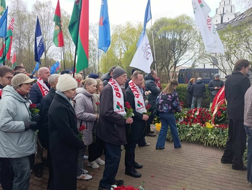 В память о скорбной дате в парке Дружбы народов к памятным знакам “Ахвярам Чарнобыля” и «Камень мира Хиросимы» возложили цветы ликвидаторы, руководители и сотрудники различных государственных органов, общественных организаций.