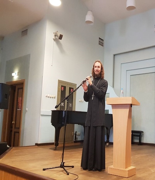 Иерей Давид Бобров в формате живого диалога с аудиторией затронул такие фундаментальные вопросы, как взаимоотношение церкви и искусства, поиск моральных ориентиров, ситуация духовно-нравственного выбора.