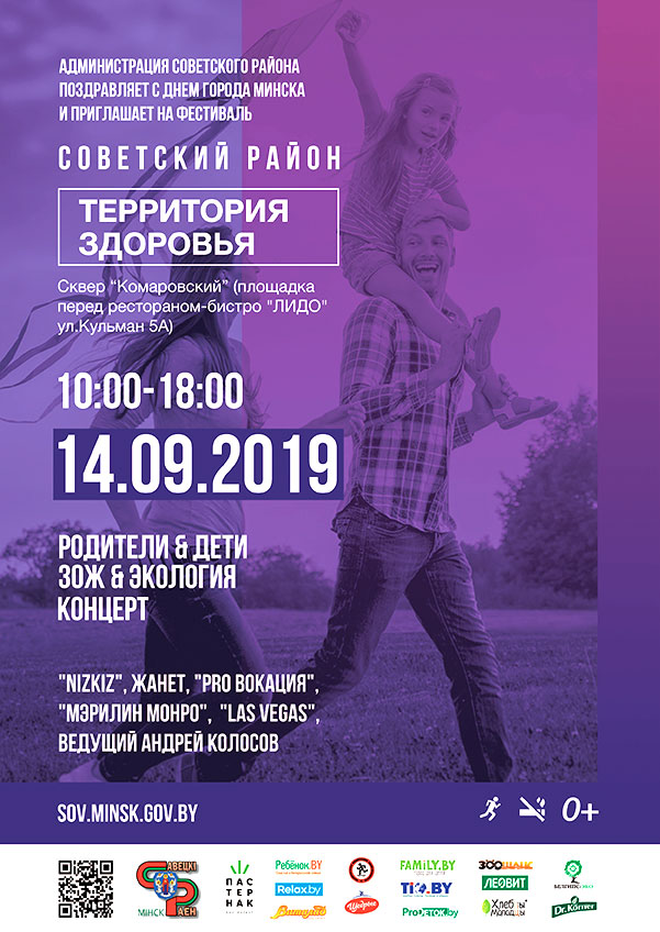Администрация Советского района поздравляет с Днём города Минска и приглашает на фестиваль "Советский район. Территория здоровья"